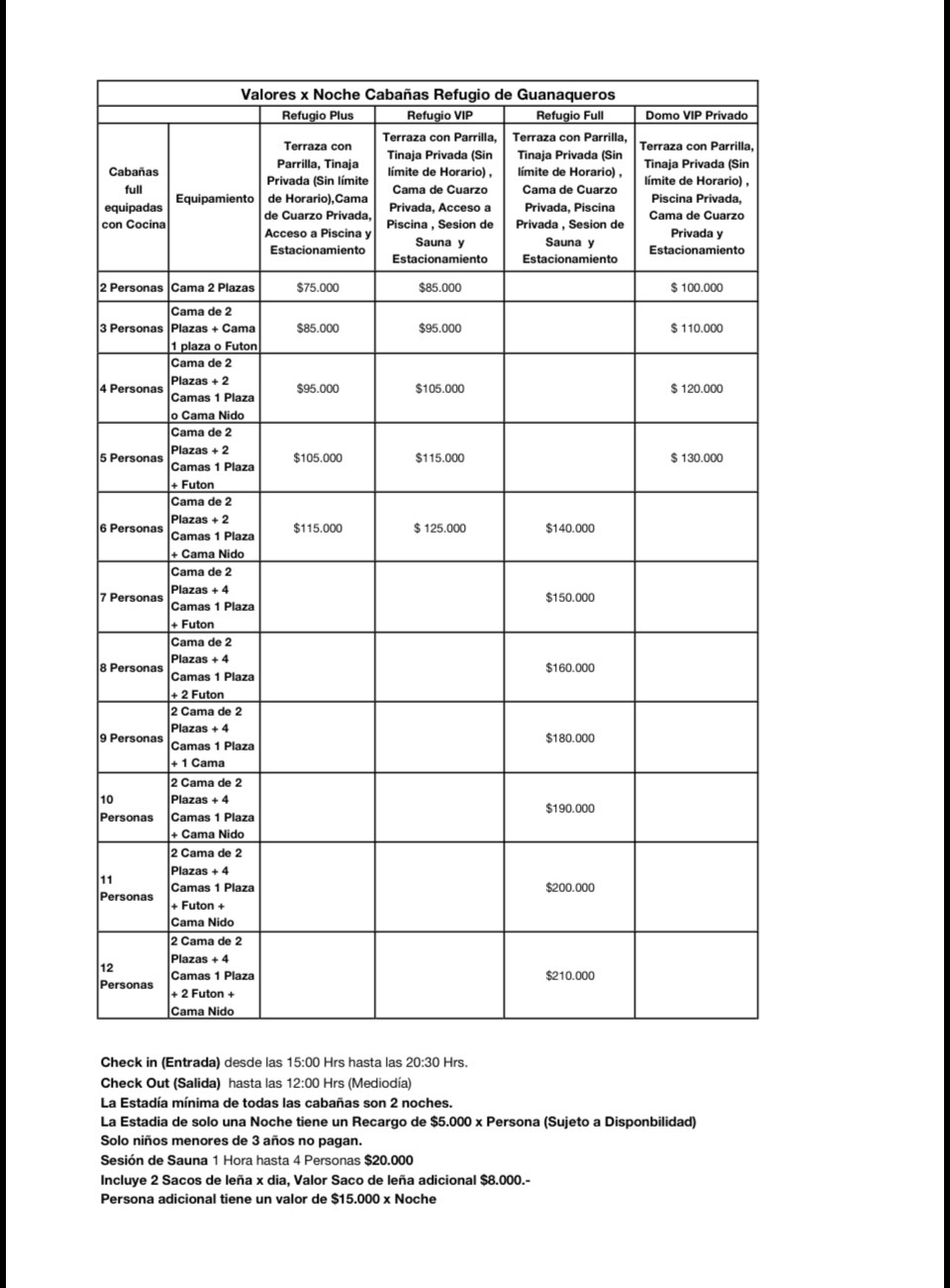 Ver Tarifas y Cabañas